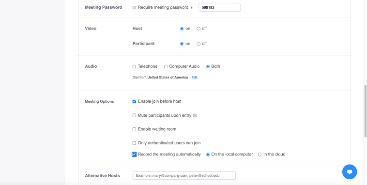 1. After this, you can scroll down and set up the rest of your meeting options.