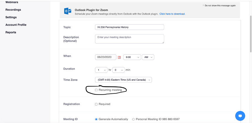 Setting up a recurring meeting: